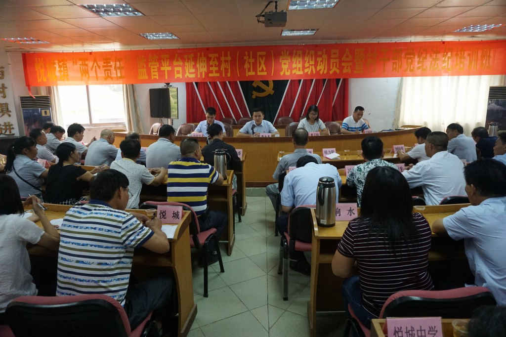 悦城镇召开“两个责任”监管平台延伸至村(社区)党组织动员会暨村干部党纪法纪培训班